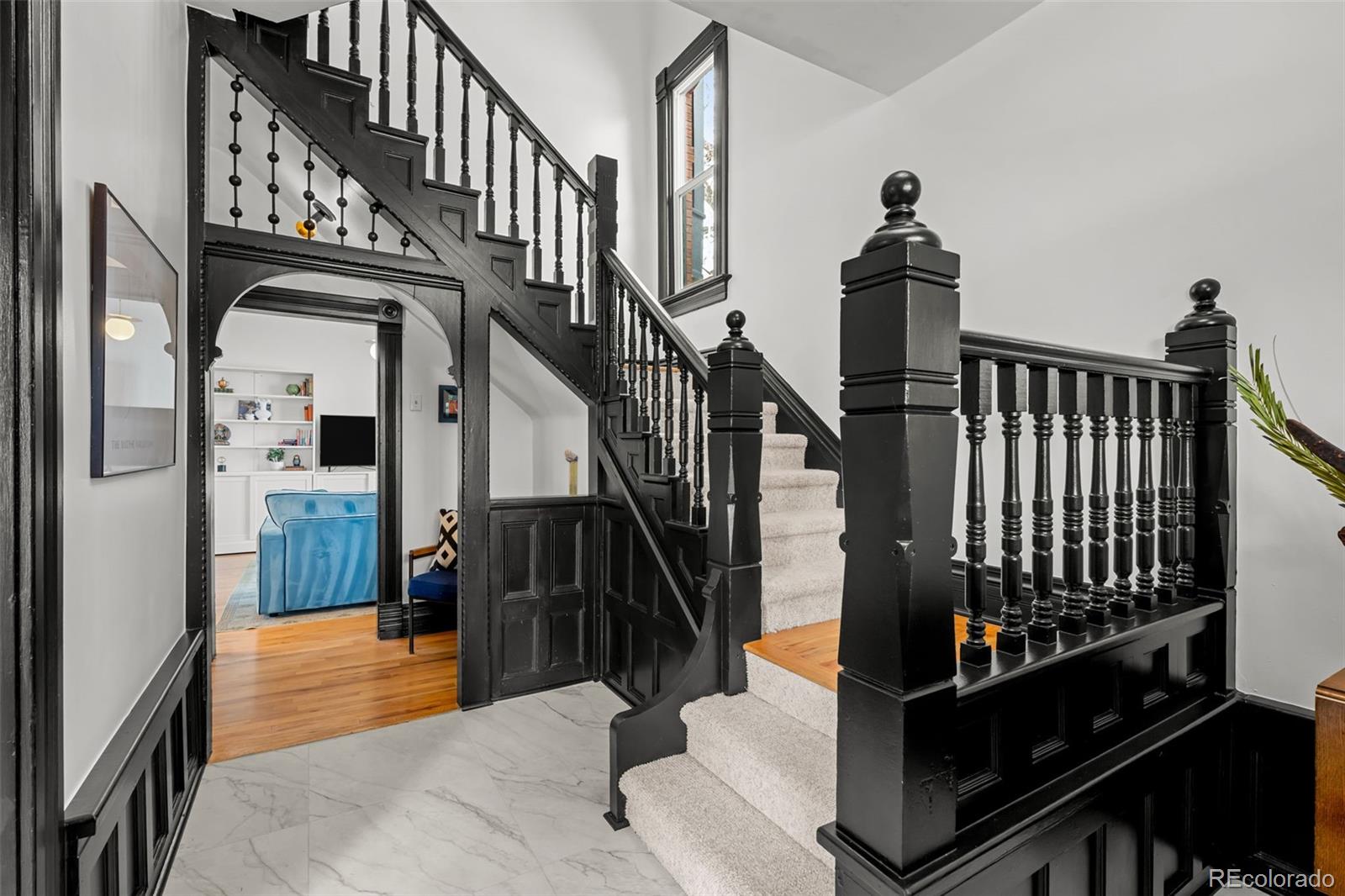 Step into timeless charm and contemporary comfort with this stunning Victorian home in the vibrant Whittier neighborhood. This home is perfectly positioned on a spacious double lot just blocks from Denver's City Park and City Park Golf Course. With over 3,800 square feet of updated living space above ground, this one-of-a-kind property offers room to live, work, and entertain in style. From the moment you approach the large, welcoming front porch, you'll feel the warmth and character that define this historic gem.